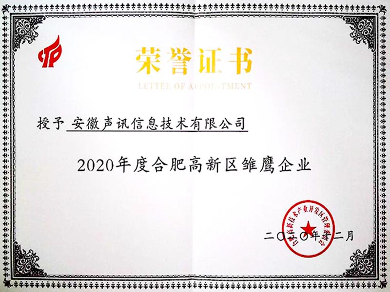 年度合肥高新区雏鹰企业202012